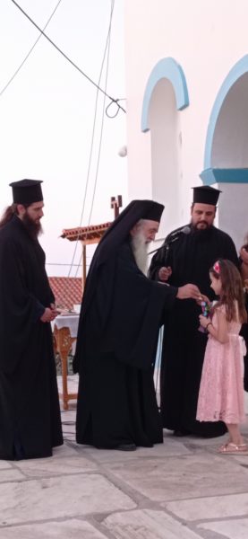 Ο Σεβασμιώτατος κατά τον χαιρετισμό του μεταξύ άλλων ευχαρίστησε τον Ιερέα του χωριού π. Χριστόδουλο Κλεάνθους, τις Καθηγήτριες κ. Έλλη Τριάντη και κ. Λουίζα Πιτσίνα που εθελοντικά κοπιάζουν για την εκμάθηση των παιδιών, ως επίσης και τους γονείς οι οποίοι εμπιστεύονται τα παιδιά τους στην Τοπική μας Εκκλησία.