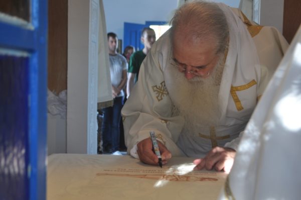 Το πρωί χοροστατούντος του Σεβασμιωτάτου Μητροπολίτου Σάμου και Ικαρίας κ. Ευσεβίου τελέσθηκαν ο Όρθρος της εορτής και των Εγκαινίων, η κατάθεση των Ιερών Λειψάνων, τα Εγκαίνια του Ιερού Θυσιαστηρίου και εν συνεχεία η Αρχιερατική Θεία Λειτουργία Ιερουργούντος του Ποιμενάρχου.