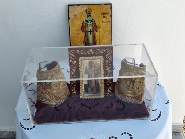 Καθ’ όλη την διάρκεια των ιερών ακολουθιών τέθηκαν σε προσκύνηση τα χρυσοκέντητα επιμάνικα που ανήκαν στον Αγιο Εθνοιερομάρτυρα Χρυσόστομο Σμύρνης και που φυλάσσονται στο εκκλησιαστικό Μουσείο της Ιεράς Μητροπόλεως Σάμου και Ικαρίας. Το κειμήλιο διέσωσε ο Σάμιος Μητροπολίτης Ανέων και Περγάμου Αλέξανδρος Δηλανάς μετά ταύτα Μητροπολίτης Ζιχνών και Βεροίας, το οποίο και προσέφερε στην Ιεράν Μητρόπολην.
