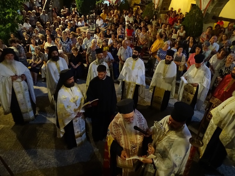 Στον Πανηγυρικό Εσπερινό χοροστάτησε ο Σεβασμιώτατος Μητροπολίτης Σάμου κ. Ευσέβιος πλαισιούμενος από Ηγουμένους των Ιερών Μονών της Σάμου και πλειάδα Ιερέων.