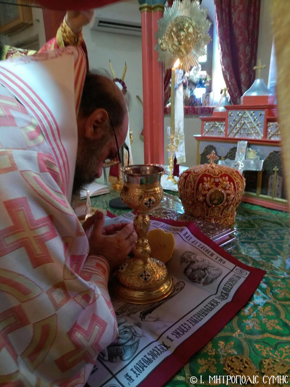 Τήν Κυριακή τό πρωί χοροστάτησε στόν Ὄρθρο καί τέλεσε τήν Θεία Λειτουργία καί πάλι στόν παμμεγέθη Ἱ. Μητροπολιτικό Ναό, ὅπου ἐκτός τῶν κατοίκων, προσῆλθαν γιά νά ἐκκλησιασθοῦν ὁ Ἀστυνομικός Διοικητής μέ Ἀστυνομικoύς τοῦ τοπικοῦ Τμήματος, καθώς καί ὁ Κυβερνήτης καί ἀρκετοί ἄνδρες ἀπό τό πλήρωμα τοῦ πολεμικοῦ μας πλοίου ΤΠΚ «ΓΡΗΓΟΡΟΠΟΥΛΟΣ», τό ὁποῖο τοῦτες τίς μέρες ἐπιχειρεῖ στήν εὑρύτερη καί εὐαίσθητη αὐτή θαλάσσια περιοχή τῶν ἐθνικῶν χωρικῶν μας ὑδάτων.