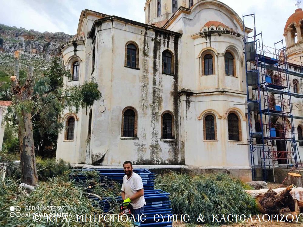 Ἡ καθ’ ἡμᾶς Ἱερά Μητρόπολις Σύμης, Τήλου, Χάλκης καί Καστελλορίζου, εὐχαρίστως φέρει εἰς γνώσιν τῶν εὐσεβῶν Χριστιανῶν, ὅτι, ὅπως ἤδη προανηγγέλθη, ἄρχισαν οἱ ἐργασίες ἀποπερατώσεως, ἀποκαταστάσεως καί ἐξοπλισμοῦ τοῦ ἱστορικοῦ Ἱεροῦ Ναοῦ Ἁγίου Γεωργίου «Σαντραπέ» Καστελλορίζου, ἔργον τό ὁποῖο εὐγενῶς ἀνέλαβε καί δωρεάν προσφέρει ἡ Ἑταιρεία «ΑΙΓΕΑΣ ΑΜΚΕ» τοῦ Εὐεργέτου κ. Ἀθανασίου Μαρτίνου στήν τοπική μας Ἐκκλησία καί τήν ἐν Καστελλορίζῳ τοπική κοινωνία.