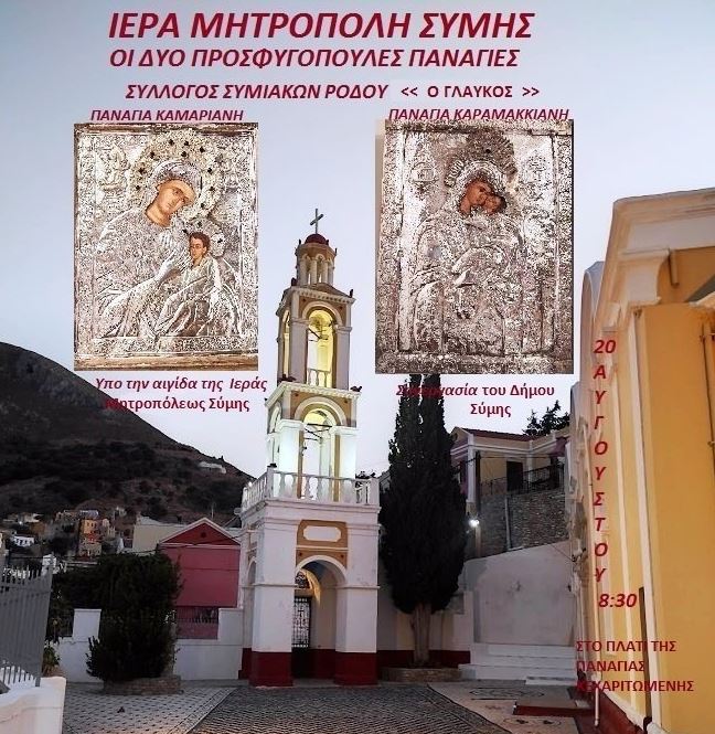 Την επομένη ημέρα, ο Σεβασμιώτατος θα χοροστατήσει του Όρθρου και θα τελέσει την Θεία Λειτουργία στον Ι. Ενοριακό Ναό Ἁγίου Νικολάου Σύμης, επί τη Συνάξει της εκεί αποτεθησαυρισμένης Ι. Εικόνος Παναγίας «του Χάρου», μετά ιερού μνημοσύνου υπέρ αναπαύσεως των θυμάτων της Μικρασιατικῆς Καταστροφῆς.