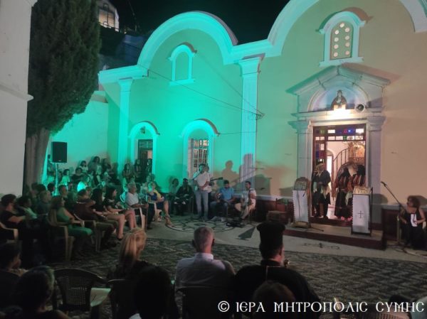 Τέλος την εκδήλωση έκλεισε ο Σεβασμιώτατος Μητροπολίτης Σύμης, Τήλου, Χάλκης και Καστελλορίζου κ. Χρυσόστομος αναφερόμενος δι’ ολίγον στο περιεχόμενο αυτής της εκδηλώσεως εκφράζοντας την απόλυτη ικανοποίησή του για το εξαιρετικό αποτέλεσμα καθώς επίσης συνεχάρη και ευχαρίστησε όλους τους συντελεστές.