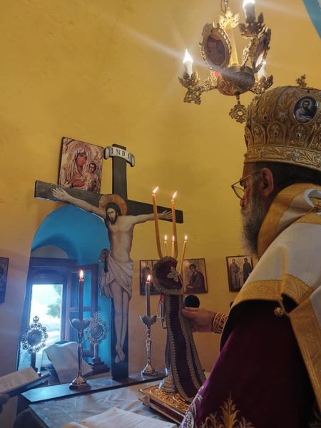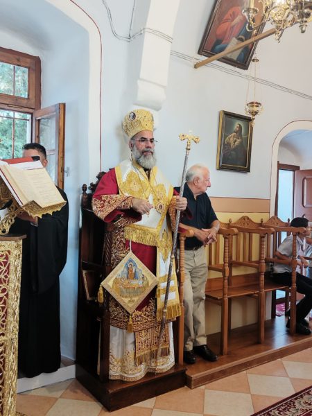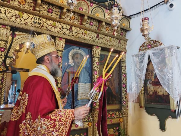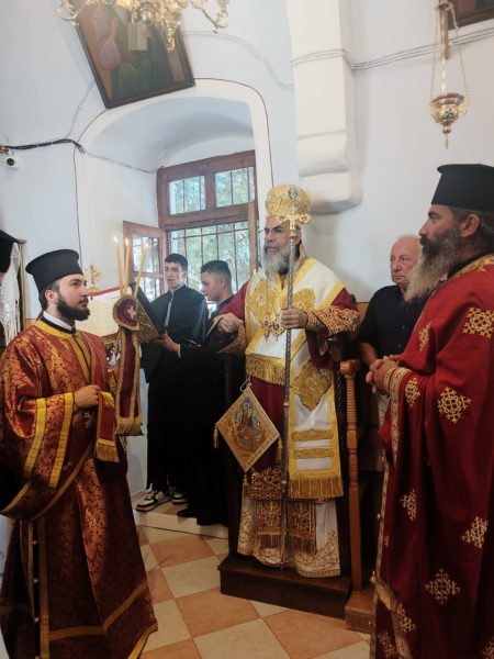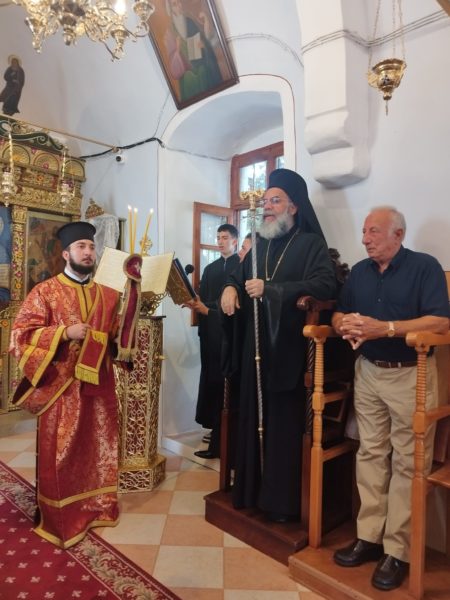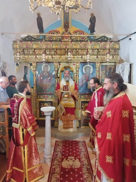 Ανήμερα της εορτής ο Σεβασμιώτατος χοροστάτησε στον Όρθρο και τέλεσε τη Θεία Λειτουργία στον πανηγυρίζοντα Προσκυνηματικό Ναό Παναγίας Αληθινής Σύμης.