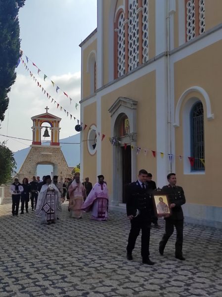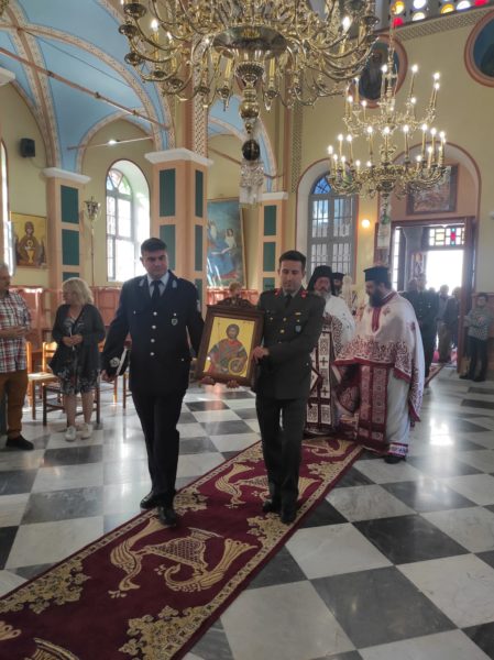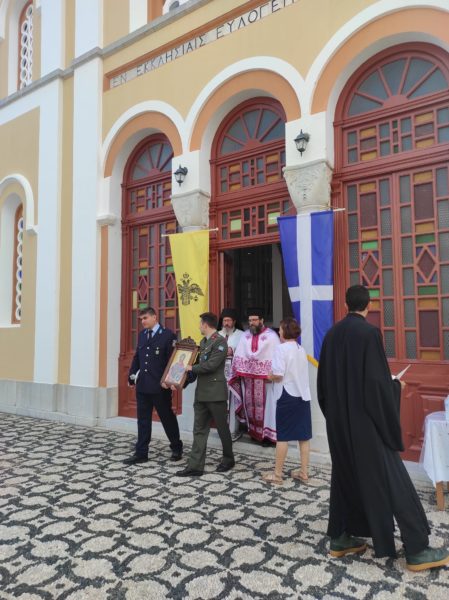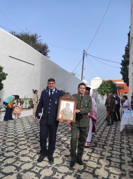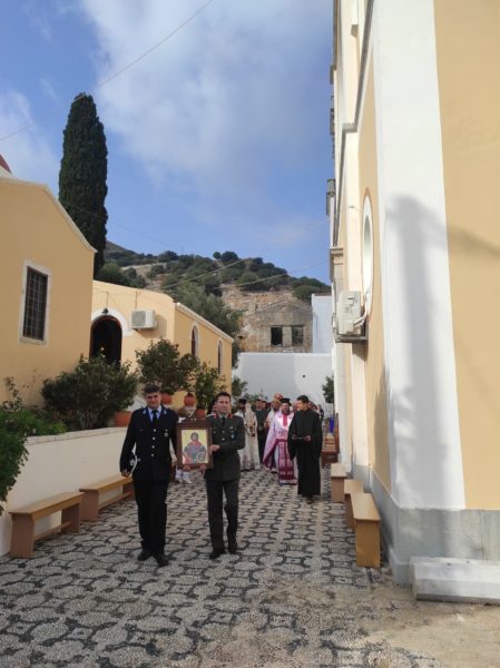 Στο πλαίσιο του εορτασμού, τελέσθηκε προ της απολύσεως η καθιερωμένη πανηγυρική Δοξολογία, της οποίας προέστη ο Σεβασμιώτατος κ. Χρυσόστομος, με την συμμετοχή Αντιπροσωπείας του Αστυνομικού Τμήματος Σύμης και των λοιπών τοπικών Στρατιωτικών και Λιμενικών Αρχών, Συλλόγων και Φορέων. Εν συνεχεία έλαβε χώρα λιτανεία του Ιερού Λειψάνου και της Εικόνος του Αγίου πέριξ του επιβλητικού Ενοριακού Ναού, προς αγιασμό των Συμμετεχόντων πιστών, ως και των ευλαβών Ενοριτών της μεγάλης αυτής Ενορίας της Νήσου.