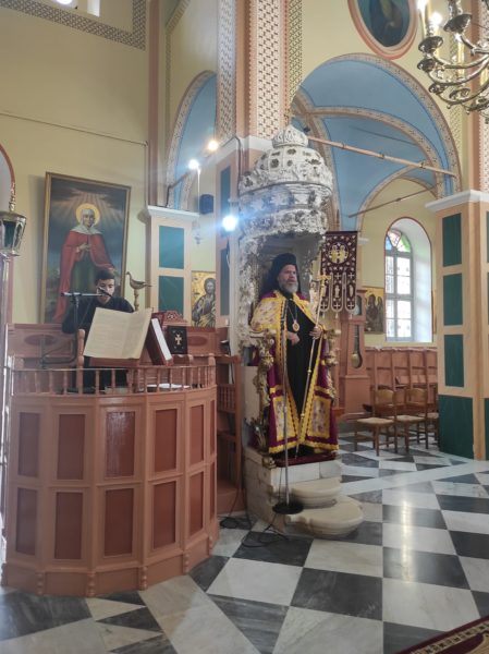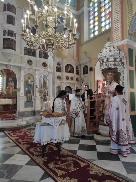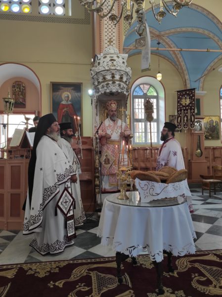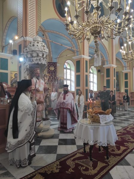 Επίσης ευλόγησε τους προσφερομένους Άρτους και κατά την διακονία του θείου λόγου, αναφέρθηκε στον Άγιο Αρτέμιο, ο οποίος ήταν Χριστιανός αριστοκρατικής καταγωγής και γεννήθηκε στην Αντιόχεια. Ο Αυτοκράτορας Άγιος Ισαπόστολος Μέγας Κωνσταντίνος, επιβραβεύοντας τα ηθικά και πολιτικά του χαρίσματα, τον τίμησε με το αξίωμα του Πατρικίου και τον διόρισε Δούκα και Αυγουστάλιο της Αλεξανδρείας.