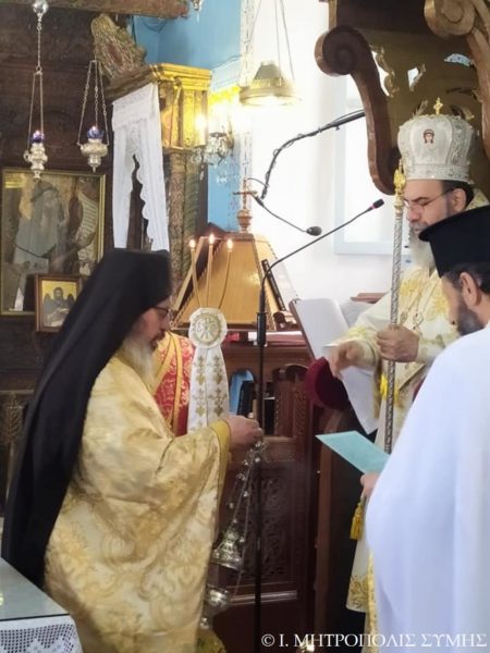 Το επίκεντρο κατέστη ο ομώνυμος Ενοριακός Ι. Ναός που βρίσκεται στον πυρήνα του οικισμού της άνω Χώρας της Σύμης, όπου χοροστάτησε στον Όρθρο και τέλεσε την Θεία Λειτουργία ο Σεβ. Μητροπολίτης Σύμης, Τήλου, Χάλκης και Καστελλορίζου κ. Χρυσόστομος, έχοντας συλλειτουργούς του τον Πανοσιολ. Καθηγούμενο της Ι. Μονής Πανορμίτου, Αρχιμανδρίτη π. Αντώνιο Πατρό, τον Αιδεσ. Εφημέριο του Ι. Ναού π. Αντώνιο Μανιά και τον Διάκονο π. Γεώργιο Κακακιό, άγοντα και τα ονομαστήρια αυτού.