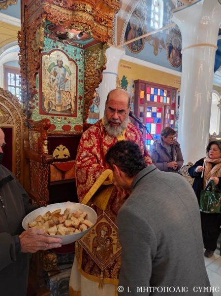 Ο Μητροπολίτης Σύμης κ. Χρυσόστομος, ο οποίος σήμερα συμπλήρωσε πέντε έτη από την ημέρα της εις Επίσκοπον Χειροτονίας, χοροστάτησε στον Όρθρο και τέλεσε την Θεία Λειτουργία, στον Ενοριακό Ιερό Ναό του Αγίου Αθανασίου Σύμης.
