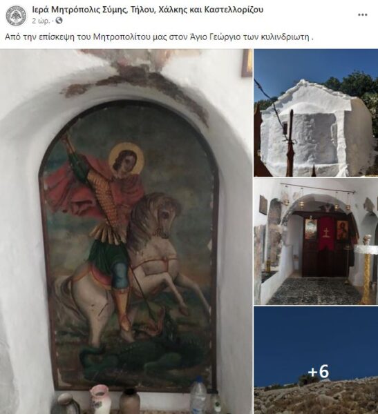 Ι.Μ. Σύμης, Τήλου, Χάλκης και Καστελλορίζου 25 Σεπτεμβρίου, 2020 Επίσκεψη στον Άγιο Γεώργιο τον Κυλινδριώτη Διαδώστε: Φωτογραφικά στιγμιότυπα από την επίσκεψη του Σεβασμιωτάτου Μητροπολίτου Σύμης, Τήλου, Χάλκης και Καστελορίζου κ. Χρυσοστόμου στον Άγιο Γεώργιο των Κυλινδριώτη, όπως αυτά δημοσιεύονται εκ μέρους της Ιεράς Μητροπόλεως. Διαδώστε: