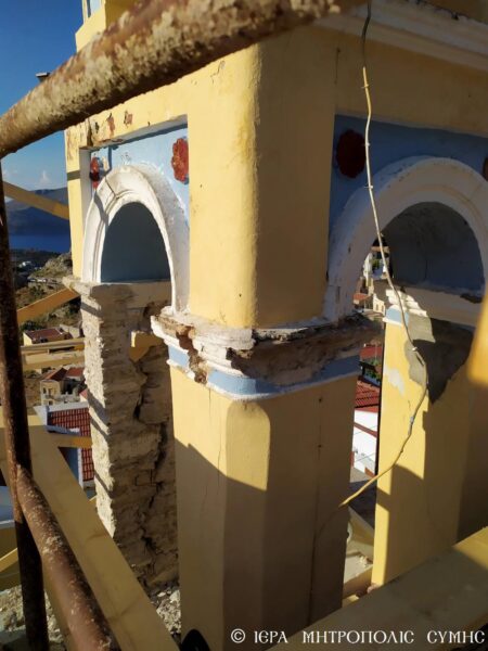 “Ευελπιστούμεν ότι με την συμπαράστασιν πάντων ημών, οι εργασίες στερεώσεως θα ολοκληρωθούν σύντομα, ώστε το Κωδωνοστάσιο που αποτελεί ένα κόσμημα σε συνέχεια και των λοιπών εμβληματικών Κωδωνωστασίων της Σύμης, να αποκατασταθεί πλήρως και να να στερεωθεί η λίθινη τοιχοποιΐα του φέροντος οργανισμού προκειμένου το μνημείο να συνεχίσει επί πολλά έτη να κοσμεί το κτιριακό συγκρότημα του Ι. Ναού και με τον ήχο των κωδώνων του να συγκαλεί τους ευλαβείς Χριστιανούς εις τας Ιεράς Ακολουθίας και ιδίως εκείνους που έλκουν την καταγωγήν τους από την πάλαι ποτέ διαλάμψασαν Ενορίαν”, αναφέρει η ανακοίνωση της Ιεράς Μητροπόλεως.