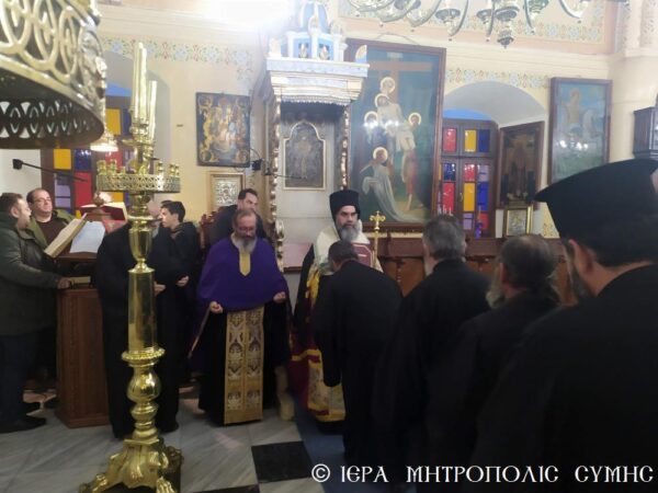 Το απόγευμα της Κυριακής της Τυρινής, 1η Μαρτίου 2020, τελέστηκε ο Α΄ Κατανυκτικός Εσπερινός της Αγίας και Μεγάλης Τεσσαρακοστής, ο επονομαζόμενος της «Συγγνώμης», στον Ιερό Μητροπολιτικό Ναό του Τιμίου Προδρόμου Σύμης. Στην ακολουθία προεξήρχε ο Σεβασμιώτατος Μητροπολίτης Σύμης κ. Χρυσόστομος και συμμετείχαν οι Κληρικοί της Νήσου και αρκετοί πιστοί.