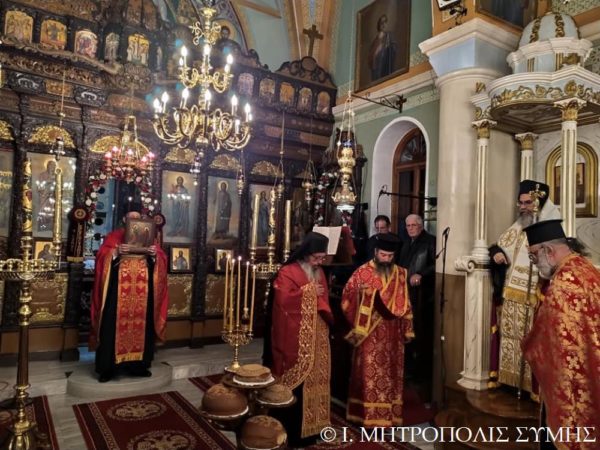 Το πρωί της Πέμπτης, κυριωνύμου ημέρας της εορτής έγινε η έναρξη του Όρθρου και ακολούθησε η Αρχιερατική Θεία Λειτουργία μετ’ αρτοκλασίας, ιερουργούντος του Σεβασμιωτάτου Μητροπολίτου κ. Χρυσοστόμου, συλλειτουργοί του οποίου ήταν ο Γεν. Αρχιερατικός Επίτροπος Πρωτοπρ. Στεφ. Μακρής, ο Αιδεσ. Εφημέριος της Ενορίας Πρεσβ. Αντώνιος Μανιάς και ο Διάκονος π. Γεώργιος Κακακιός. Παρέστησαν εκπρόσωποι των τοπικών Αρχών, με επικεφαλής τον Δήμαρχο Σύμης κ. Ελευθ. Παπακαλοδούκα και την Πρόεδρο του Δ.Σ. κ. Σεβαστή Λούππη.