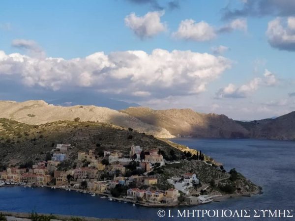 Στην Σύμη, την έδρα της Μητροπόλεως, το επίκεντρο του εορτασμού ήταν ο πανηγυρίζων ενοριακός Ιερός Ναός του Ευαγγελισμού της Θεοτόκου, στον οποίο το εσπέρας της Τετάρτης ετελέσθη Μέγας Πανηγυρικός Εσπερινός, χοροστατούντος του Σεβασμιωτάτου Μητροπολίτου κ. Χρυσοστόμου, συμπαραστατουμένου υπό του Πανοσιολ. Καθηγουμένου της Ι. Μονής Πανορμίτου Αρχιμ. Αντωνίου Πατρού, του Γεν. Αρχιερατικού Επιτρόπου Πρωτοπρ. Στεφ. Μακρή, του Αιδεσ. Εφημερίου της Ενορίας Πρεσβ. Αντωνίου Μανιά και του Διακόνου  π. Γεωργίου Κακακιού.