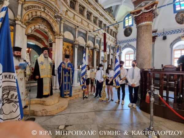 Το πρωί της Δευτέρας, πριν την πανηγυρική δοξολογία, ο Σεβασμιώτατος τέλεσε τον Αγιασμό επί τη ενάρξει του νέου Σχολικού έτους στο Δημοτικό-Γυμνάσιο-Λύκειο Καστελλορίζου (Σαντράπειος Ἀστική Σχολή), ευχηθείς τα δέοντα τόσο στους μαθητές όσο και στους εκπαιδευτικούς.