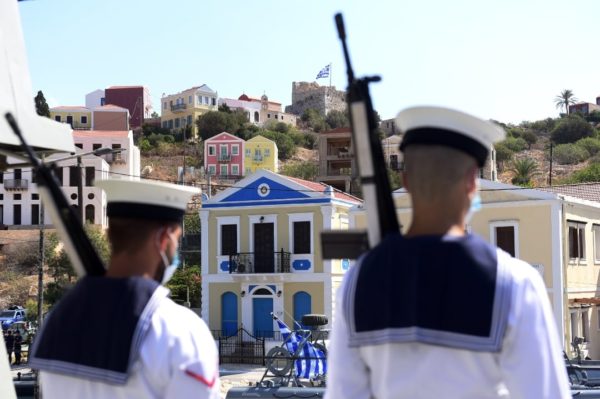 Αργότερα, ο κ. Παναγιωτόπουλος επιβιβάστηκε στην Πυραυλάκατο (ΤΠΚ) «ΡΟΥΣΣΕΝ», που περιπολεί στην περιοχή και συνομίλησε με τα μέλη του πληρώματος. Στη συνέχεια επισκέφθηκε το Στρατόπεδο Δυνάμεως Αμύνης Νήσου (ΔΑΝ) Μεγίστης, όπου ενημερώθηκε σχετικώς με την αποστολή και το έργο της. Εκεί τους υποδέχθηκαν οι Φρουροί της Νήσου με εντυπωσιακή παρουσία σε εξοπλισμό και ιματισμό!