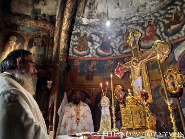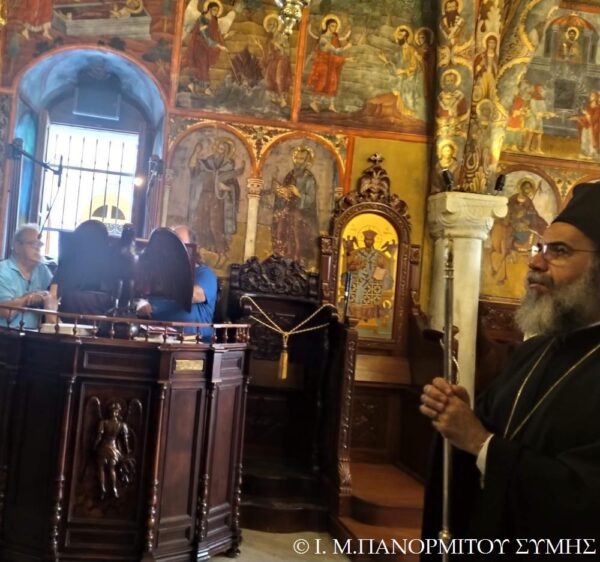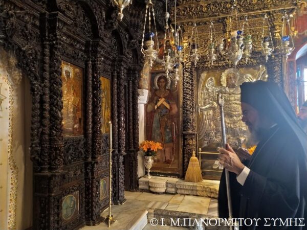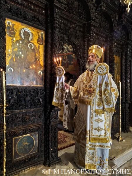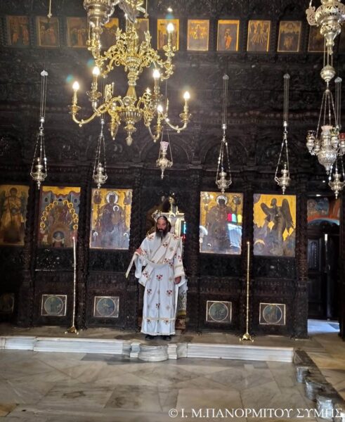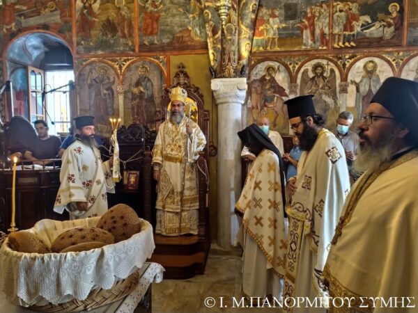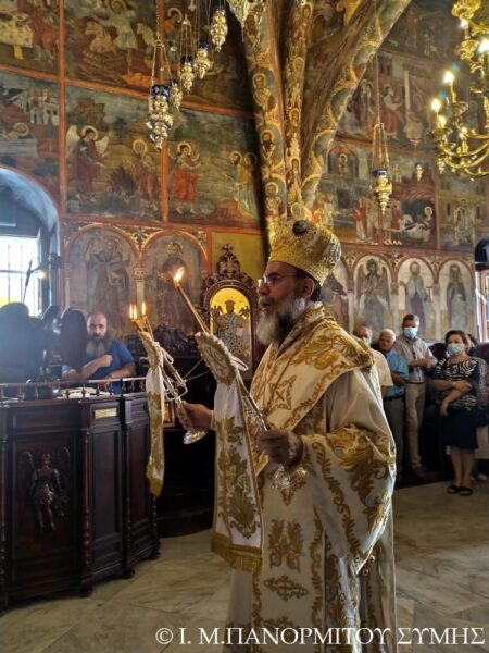 Σήμερα, Κυριακή ΙΑ Ματθαίου, 23 Αυγούστου Απόδοση της εορτής της Κοιμήσεως της Θεοτόκου και μνήμη των Λούππου Μάρτυρος και Ειρηναίου επισκόπου Λουγδούνων, ο Σεβασμιώτατος Μητροπολίτης Σύμης, Τήλου, Χάλκης και Καστελλορίζου κ. Χρυσόστομος χοροστάτησε του Όρθρου και τέλεσε την Θεία Λειτουργία, πλαισιούμενος από τον Καθηγούμενο της Ιεράς Μονής Πανορμίτου π. Αντώνιο Πατρό, τον π. Ευλόγιο κληρικό της Ι. Μητροπόλεως Άκκρας του Πατριαρχείου Αλεξανδρείας, τον νεοδιόριστο Εφημέριο του Καστελλορίζου π Χρήστο Συμεωνίδη και τον Διάκονο της Ιεράς Μητροπόλεως π. Γεώργιο Κακακιό.