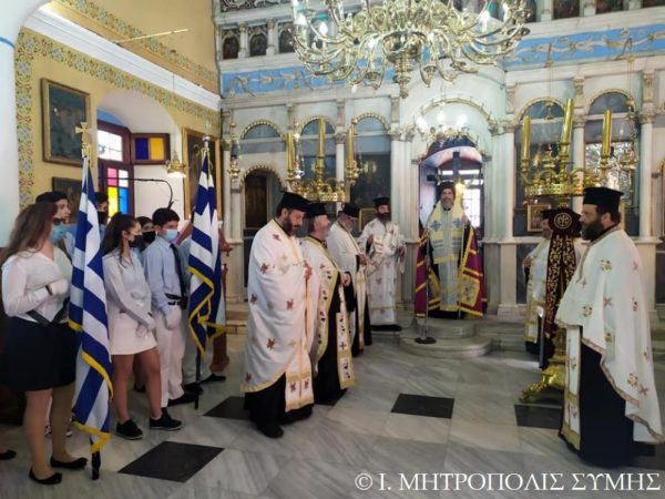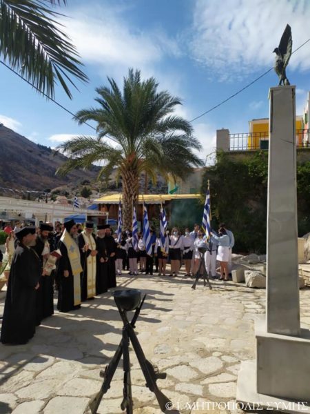 Την εθνική επέτειο της 28ης Οκτωβρίου του 1940 εόρτασαν στην ακριτική Σύμη. Ο εορτασμός ξεκίνησε με την Αρχιερατική Θεία Λειτουργία στον Ιερό Ενοριακό Ναό Ευαγγελισμού της Θεοτόκου όπου εορτάστηκε η Αγία Σκέπη ενώ στη συνέχεια τελέστηκε επίσημη δοξολογία στον Ιερό Μητροπολιτικό Ναό του Τιμίου Προδρόμου προεξάρχοντος του Σεβασμιωτάτου Μητροπολίτου Σύμης, Τήλου Χάλκης και Καστελλορίζου κ. Χρυσοστόμου, συμπαραστατουμένου του Ιερού Κλήρου του νησιού.