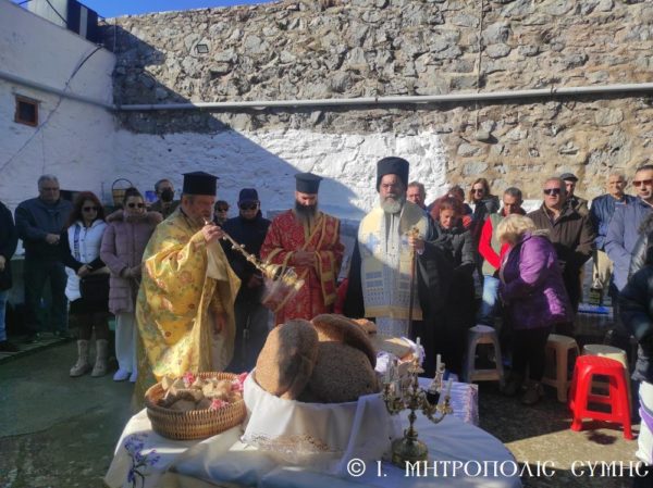 Την Θεία Λειτουργία τέλεσε ο Οικονόμος π. Ελευθέριος Οθείτης, συλλειτουργών μετά του Διακόνου π. Γεωργίου Κακακιού, ενώ την υμνωδία απέδωσε γλυκυφθόγγως ο Ιεροψάλτης κ. Αγαπητός Μιχελλής, μεθ’ ετέρων.