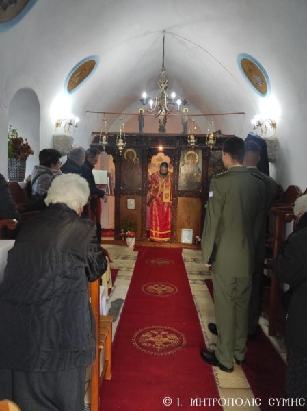 Ο Μητροπολίτης Σύμης κ. Χρυσόστομος χοροστάτησε στον Όρθρο και την Θεία Λειτουργία στο εορτάζον Ιερό Παρεκκλήσιο της Αγίας Βαρβάρας, της Παναγίας «Καμπιωτίσσης» Σύμης.