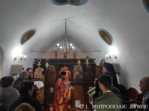 Την Θεία Λειτουργία τέλεσε ο Οικονόμος π. Ελευθέριος Οθείτης, συλλειτουργών μετά του Διακόνου π. Γεωργίου Κακακιού, ενώ την υμνωδία απέδωσε γλυκυφθόγγως ο Ιεροψάλτης κ. Αγαπητός Μιχελλής, μεθ’ ετέρων.