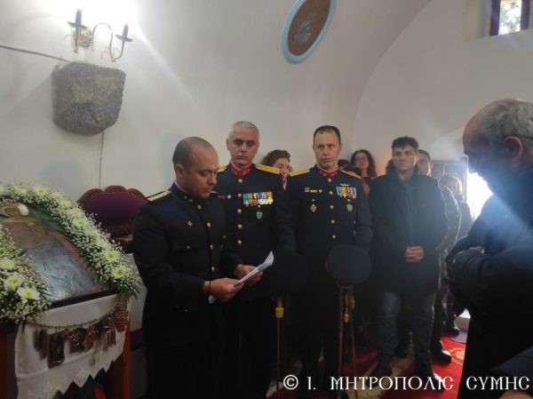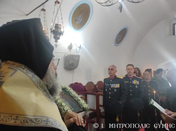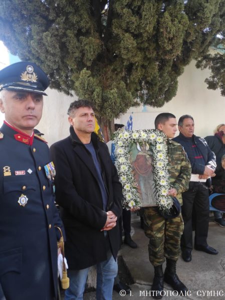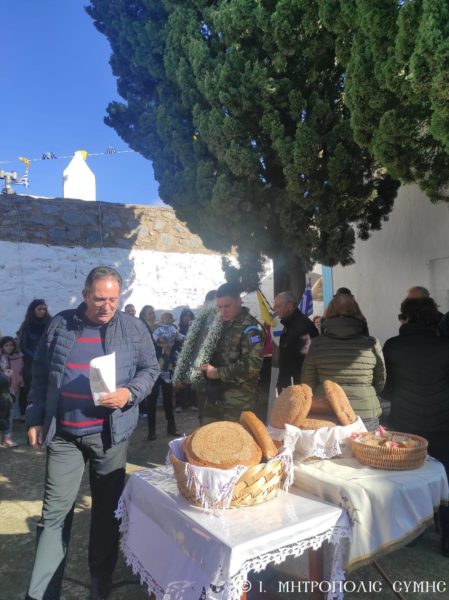 Εκτός του πολυπληθούς εκκλησιάσματος, στην Θεία Λειτουργία συμμετείχε ο Δήμαρχος Σύμης κ. Ελευθέριος Παπακαλοδούκας και πολυμελής στρατιωτική αντιπροσωπεία με επικεφαλής τον Διοικητή της Δ.Α.Ν. Σύμης Συνταγματάρχη κ. Παναγιώτη Βρανά, ως και τον Διοικητή του 549 Τ.Ε. Αντισυνταγματάρχη κ. Γεώργιο Καμπίλαυκο που παρέστη και στην τελεσθείσα εν συνεχεία επίσημη Δοξολογία της σημερινής εορτής του Ελληνικού Πυροβολικού.