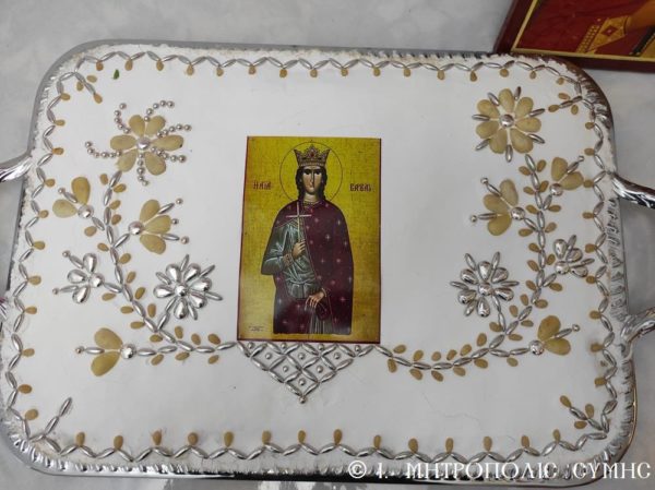Στη συνέχεια, ο Σεβασμιώτατος αναφέρθηκε στην Αγία Βαρβάρα, η οποία υπήρξε αληθινή ενσάρκωση της αρετής, αφιερώνοντας τον εαυτό της στον Ζωοδότη Χριστό, που έγινε γι’ αυτήν ο μοναδικός σκοπός της ζωής της και η πραγματικότητα της μαρτυρικής θυσίας της. Έζησε την εποχή του αυτοκράτορα Μαξιμιανού και αντιστάθηκε περήφανα στις ειδωλολατρικές ιδέες του πατέρα της και του ηγεμόνα Μαρκιανού, γιατί έτρεφε άσβεστη αγάπη για τον Χριστό.
