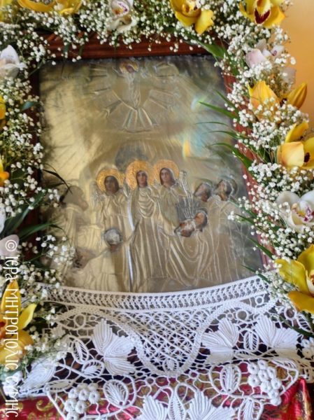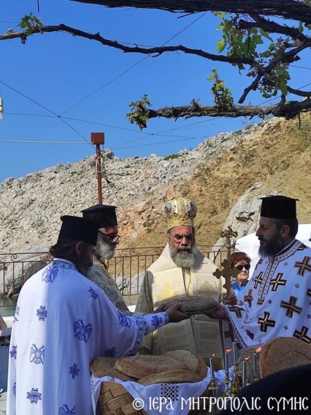 Ο Σεβασμιώτατος, ο οποίος κήρυξε και τον θείο λόγο αναλύων τα υψηλά νοήματα της Εορτής, μετά την Θ. Λειτουργία προέστη της Λιτανείας της ι. Εικόνος και εν συνεχεία ευλόγησε τους προσφερομένους Άρτους.