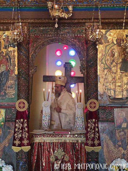 Μεγαλοπρεπώς εορτάστηκε σήμερα στην Σύμη η μεγάλη Δεσποτική εορτή της Αναλήψεως του Κυρίου. Κέντρο της Πανηγύρεως ήταν ο γραφικότατος παραθαλάσιος Ιερός Ναός της Αναλήψεως, όπου ο Μητροπολίτης Σύμης, Τήλου, Χάλκης και Καστελλορίζου κ. Χρυσόστομος προέστη το πρωί της Λειτουργικής Συνάξεως.