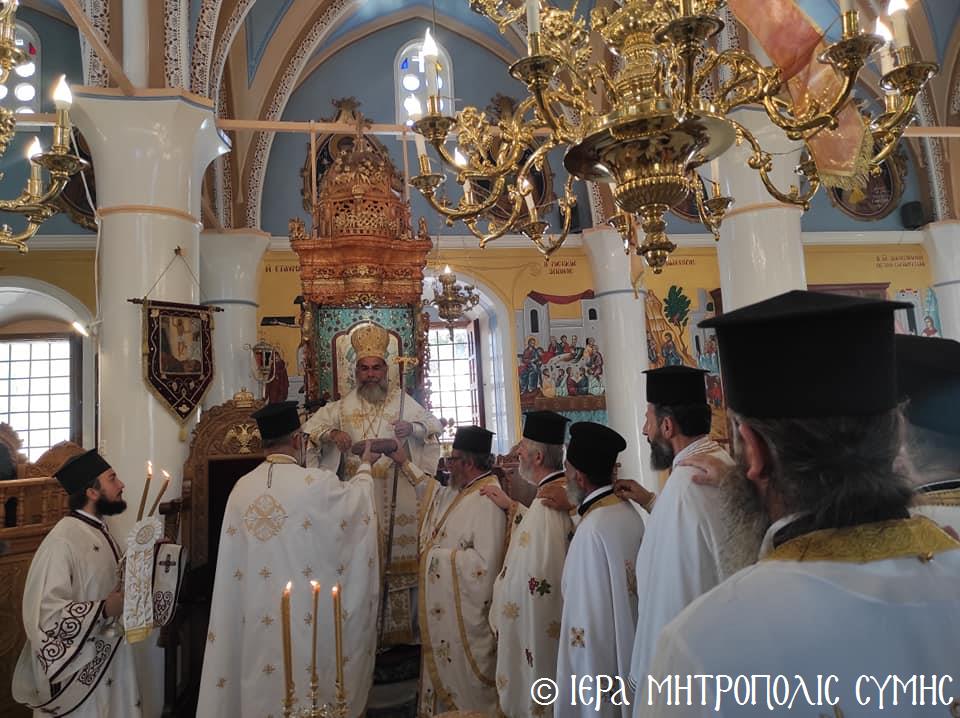 Σήμερα Πέμπτη 31 Αυγούστου 2023, ο Σεβασμιώτατος Μητροπολίτης Σύμης, Τήλου, Χάλκης και Καστελλορίζου κ. Χρυσόστομος χοροστάτησε στον Όρθρο και τέλεσε την Θεία Λειτουργία, στον μεγαλοπρεπή ενοριακό Ιερό Ναό του Αγίου Αθανασίου Σύμης, επί τη εορτή της Καταθέσεως της Τιμίας Ζώνης της Παναγίας και τη Συνάξει της Ιεράς Εικόνος της Υπεραγίας Θεοτόκου, της επονομαζομένης «Γλυστριανής», η οποία από πολλών δεκαετιών τεθησαύρισται στον Άγιο Αθανάσιο.
