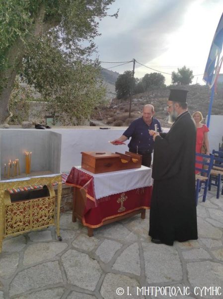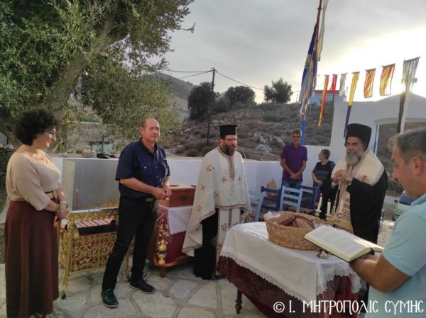 Ο Μητροπολίτης Σύμης, Τήλου, Χάλκης και Καστελλορίζου κ. Χρυσόστομος, κατά το πρόγραμμά του, εχθές Τετάρτη εσπέρας χοροστάτησε του Μεγάλου Πανηγυρικού Εσπερινού αλληλοδιαδόχως, ώρα 17:00 στο Εξωκκλήσιο του Αγίου Δημητρίου «Κάτω Μεριάς» και στο Εξωκκλήσιο Αγίου Δημητρίου «Λάκκου» Σύμης, ώρα 18:30, πλαισιούμενος αντιστοίχως εκ των Εφημερίων της Νήσου μας π. Γεωργίου Χατζηχρυσάφη και π. Παντελεήμονος Μακροπούλου, με την συμμετοχή δεκάδων πιστών, οι οποίοι προσήλθαν να τιμήσουν τον Άγιο σε αμφότερα τα ιερά του Σεβάσματα και να ανάψουν το κεράκι της προσευχής τους.