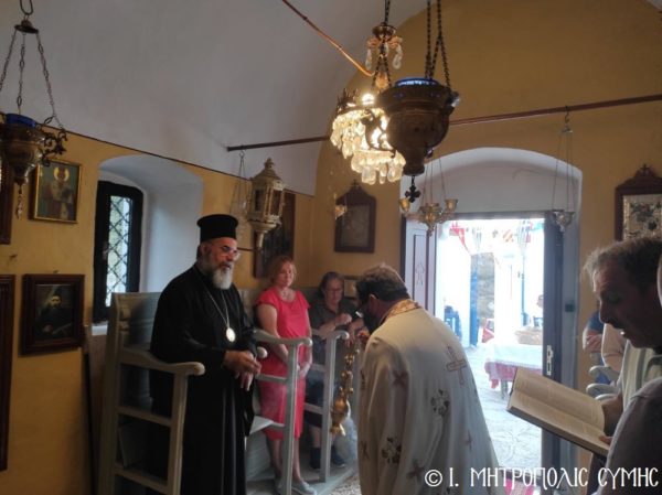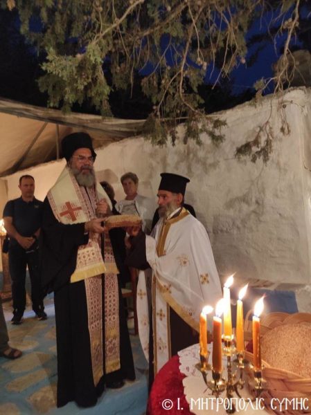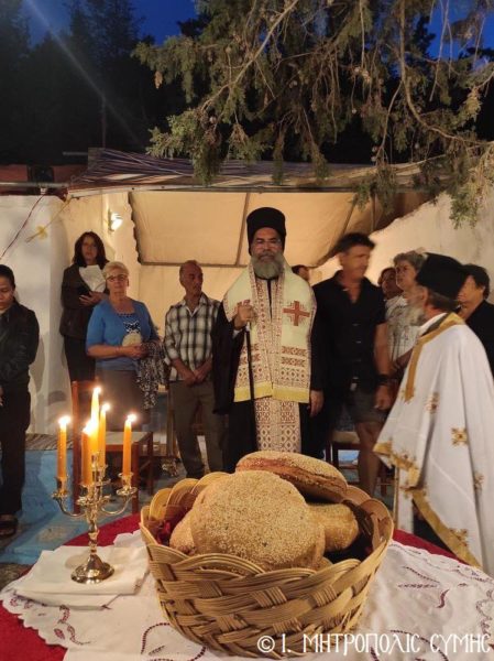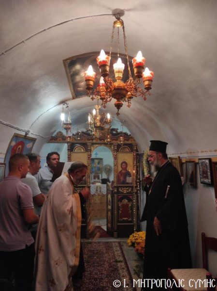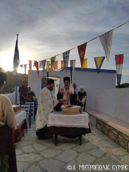 Ο Μητροπολίτης Σύμης, Τήλου, Χάλκης και Καστελλορίζου κ. Χρυσόστομος, κατά το πρόγραμμά του, εχθές Τετάρτη εσπέρας χοροστάτησε του Μεγάλου Πανηγυρικού Εσπερινού αλληλοδιαδόχως, ώρα 17:00 στο Εξωκκλήσιο του Αγίου Δημητρίου «Κάτω Μεριάς» και στο Εξωκκλήσιο Αγίου Δημητρίου «Λάκκου» Σύμης, ώρα 18:30, πλαισιούμενος αντιστοίχως εκ των Εφημερίων της Νήσου μας π. Γεωργίου Χατζηχρυσάφη και π. Παντελεήμονος Μακροπούλου, με την συμμετοχή δεκάδων πιστών, οι οποίοι προσήλθαν να τιμήσουν τον Άγιο σε αμφότερα τα ιερά του Σεβάσματα και να ανάψουν το κεράκι της προσευχής τους.