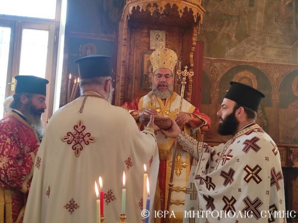 Σήμερα Τετάρτη, την κυριώνυμο ημέρα της εορτής, ο Σεβασμώτατος χοροστάτησε στον Όρθρο και τέλεσε την Θεία Λειτουργία στον Ενοριακό Ι. Ναό του Αγίου, με συλλειτουργούς του τον Γεν. Αρχιερατικό Επίτροπο π. Στέφανο Μακρή, τον π. Φιλόθεο Κάλφα και τον Διάκονο π. Γεώργιο Κακακιό.