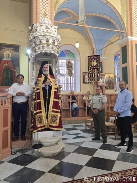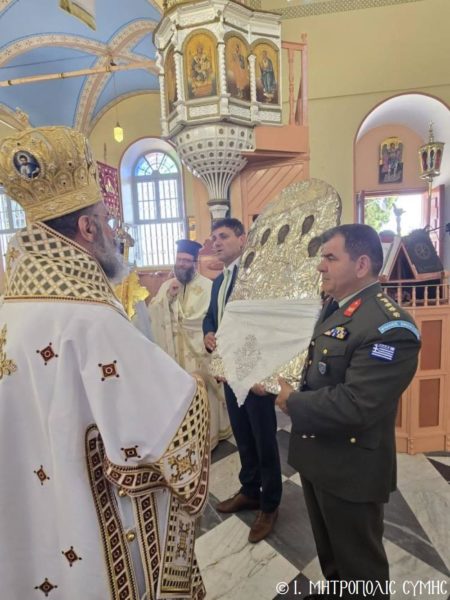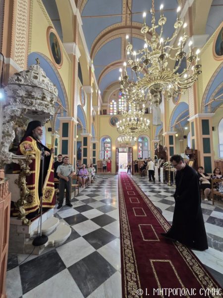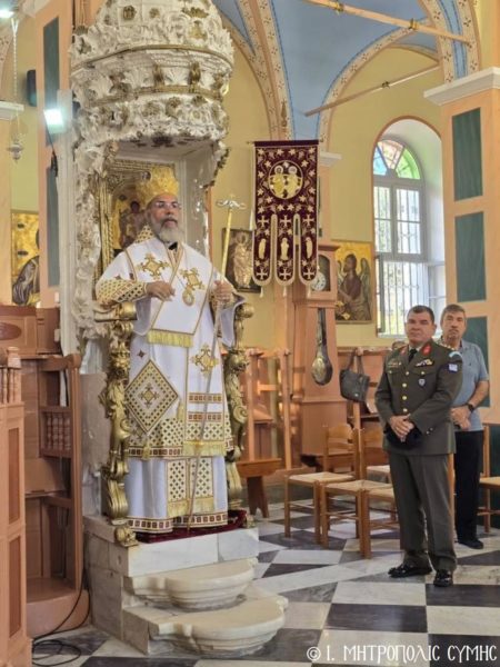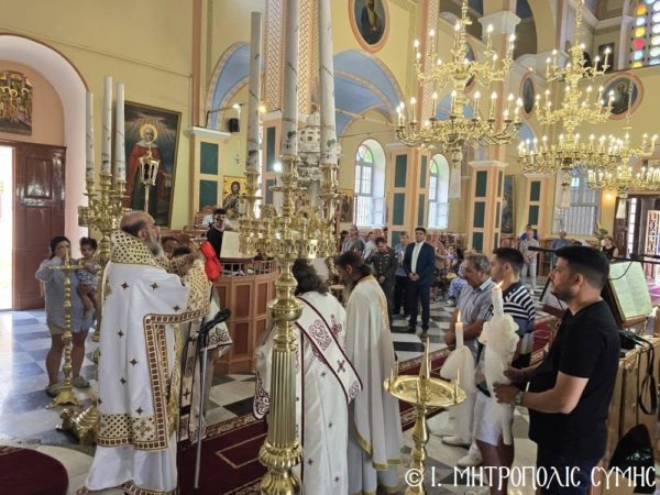 Εκκλησιάστηκαν δεκάδες πιστοί και οι εκπρόσωποι των τοπικών Αρχών, με επικεφαλής τον Δήμαρχο Σύμης κ. Ελευθ. Παπακαλοδούκα, ο Διοικητής της Δ.Α.Ν. Σύμης Συνταγματάρχης κ. Χαράλαμπος Κατηφόρης κ. α.