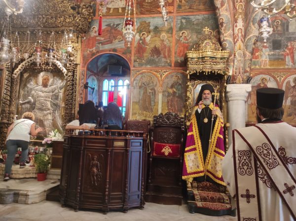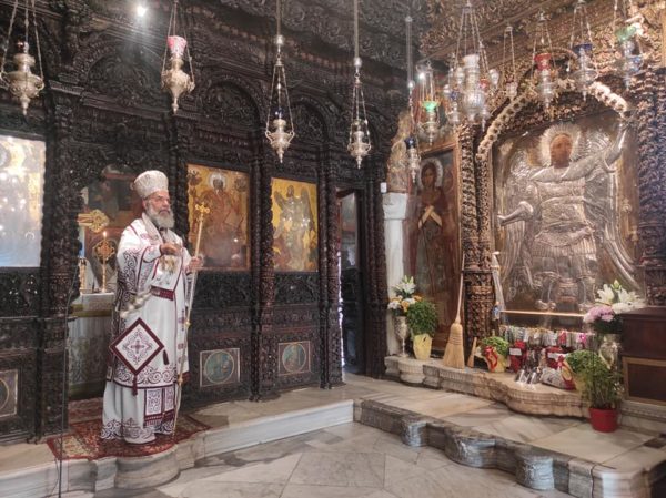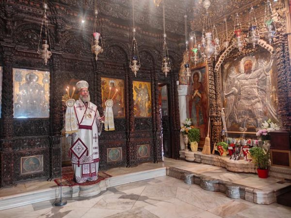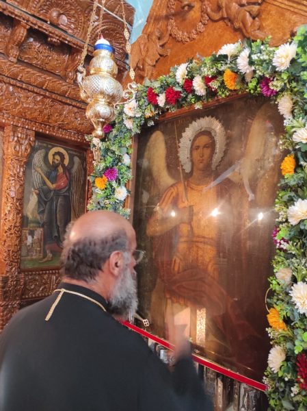 Ο Σεβασμιώτατος κ. Χρυσόστομος κήρυξε το θείον λόγον προς τους παρεπιδημούντας, ιδία εκ της Νήσου Λέρου και αλλαχού, ευσεβείς προσκυνητάς του Ταξιάρχου, αναφερθείς στο ιστορικό αυτό θαυμαστό γεγονός του γενομένου θαύματος, ευχόμενος όπως ο Παμμέγιστος Αρχάγγελος και στους χαλεπούς καιρούς μας, ανακόψει όπως τότε και σήμερα τα τρικυμιώδη κύματα της δαιμονικής αποστασίας και τον κατακλυσμόν της κακίας, περιφρουρώντας την Πατρίδα μας, ως και άπαντα τον κόσμο και μάλιστα όλους όσοι καταφεύγουν υπό την σκέπη των αύλων Αυτού Πτερύγων.