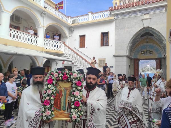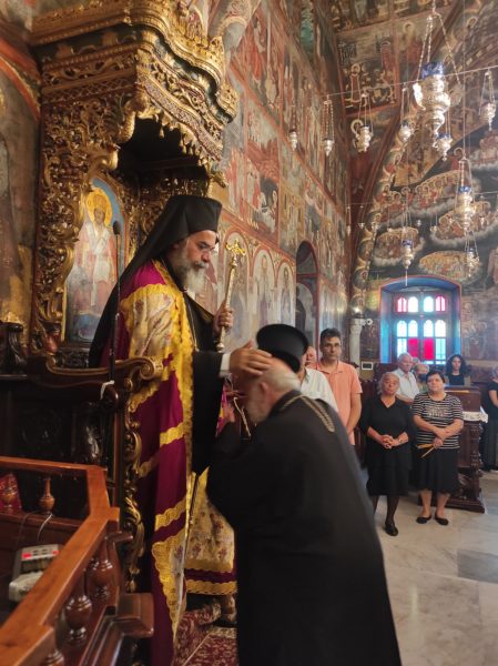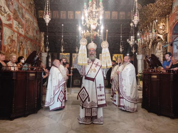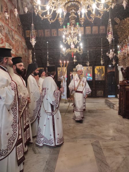 Σήμερα Τετάρτη 6η Σεπτεμβρίου, κυριώνυμος ημέρα, ο Σεβασμιώτατος Μητροπολίτης κ. Χρυσόστομος χοροστάτησε πανηγυρικώς στον Όρθρο και τέλεσε την Θεία Λειτουργία στην πανηγυρίζουσα Ιερά Μονή Πανορμίτου. Συλλειτούργησαν ο Πανοσιολ. Καθηγούμενος της Ι. Μονής, Αρχιμανδρίτης του Οικουμενικού Θρόνου π. Αντώνιος Πατρός, ο Αρχιμανδρίτης π. Ανδρέας Δημητρίου, ο Γεν. Αρχιερατικός Επίτροπος της Ι. Μητροπόλεως Κώου και Νισύρου, Αιδεσιμολ. Πρωτοπρεσβύτερος του Οικουμενικού Θρόνου π. Ιωάννης Διακοπαναγιώτης, φιλοξενούμενος του Σεβασμιωτάτου, οι Ιερείς π. Φιλόθεος Κάλφας και π. Γεώργιος Κακακιός, ως και ο Ιεροδιάκονος και αδελφός της Μονής π. Παύλος Τερεζάκης. Το δε Ιερό Αναλόγιο διηκόνησαν γλυκυφθόγγως, ο κ. Σταύρος Πήλιουρας, Πρωτοψάλτης της Ι. Μονής μετά του φιλοξενουμένου κ. Νικολάου Τσιρούδη.