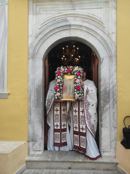 Προ της απολύσεως έλαβε χώρα, προς αγιασμόν των εκατοντάδων πιστών, η περιφορά της Εικόνος του εν Χώναις Θαύματος πέριξ του Καθολικού και έμπροσθεν της κεντρικής Πύλης της Μονής, όπου ανεπέμφθη δέησις υπέρ υγείας, σωτηρίας και θείας βοηθείας πάντων των ευσεβών και Ορθοδόξων Χριστιανών, των εγγύς και μακράν, ως και των εν θαλάσσαις και αέρι πλεόντων, των επικαλουμένων την Χάριν του Παμμεγίστου Ταξιάρχου.