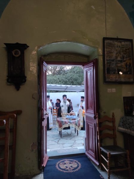 Εχθές Τρίτη 5η Σεπτεμβρίου, εσπέρας της παραμονής, τελέσθηκε ο Μέγας πανηγυρικός Εσπερινός εις το Ιερόν Μονύδριον του Ταξιάρχου Μιχαήλ του Περιβιώτου, χοροστατούντος του Μητροπολίτη Σύμης κ. Χρυσοστόμου, συμπαραστατουμένου εκ του Γεν. Αρχιερατικού Επιτρόπου, Πρωτοπρ. π. Στεφάνου Μακρή και του Πρεσβ. π. Γεωργίου Κακακιού, ενώ το ι. αναλόγιο διακόνησαν οι Ιεροψάλτες κ. Αγαπητός Μιχελλής και κ. Πανορμίτης Κακακιός.