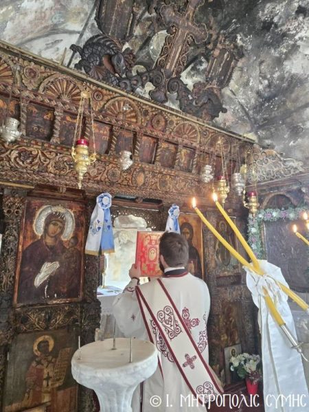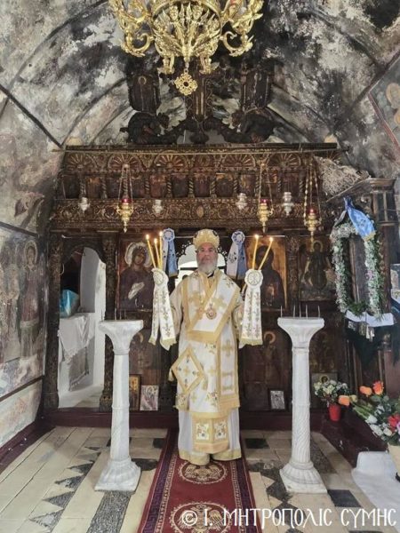 Σήμερα, Κυριακή 20η Ιουλίου, κυριώνυμη ημέρα της εορτής, ο Σεβ. Μητροπολίτης κ. Χρυσόστομος χοροστάτησε του Όρθρου και τέλεσε την Θεία Λειτουργία, στην παλαίφατη Ι. Μονή του Προφήτου Ηλιού «Βίγλας», κατά την Συμαική ντοπιολαλιά στον «Αι Νουλιά», που βρίσκεται σκαρφαλωμένη στην απότομη πλαγιά του ομώνυμου βουνού, πάνω από το Κοιμητήριο της Αγίας Μαρίνας. Συλλειτουργοί του ήσαν ο π. Γεώργιος Χατζηχρυσάφης και ο Ιεροδιάκονος π. Παύλος Τερεζάκης, ενώ το Ι. αναλόγιο διακόνησαν οι Ιεροψάλτες κ. Δημοσθένης και κ. Μερκούριος Γιανναράς.