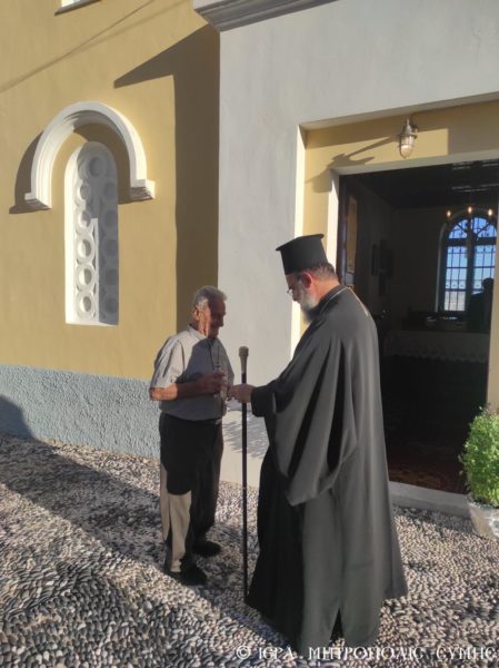 Με την μέριμνα του Εκκλησιαστικού Συμβουλίου της ενορίας και των κυριών αυτής προσφέρθηκαν στους πολυπληθείς εκκλησιαζομένους καφές και νηστήσιμα κεράσματα στο προαύλιο του Ναού, προκειμένου το κλίμα της πνευματικής χαράς και ευφροσύνης, να επισφραγισθεί και με την ευλογημένη ευκαιρία της διαπροσωπικής επικοινωνίας και επαφής των ανθρώπων.