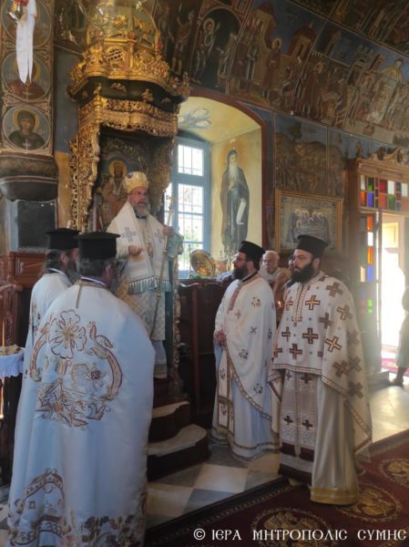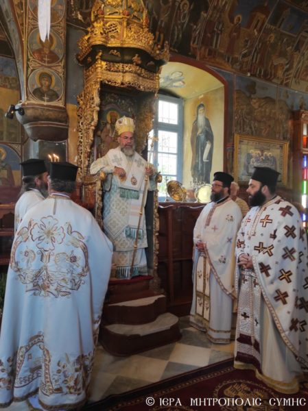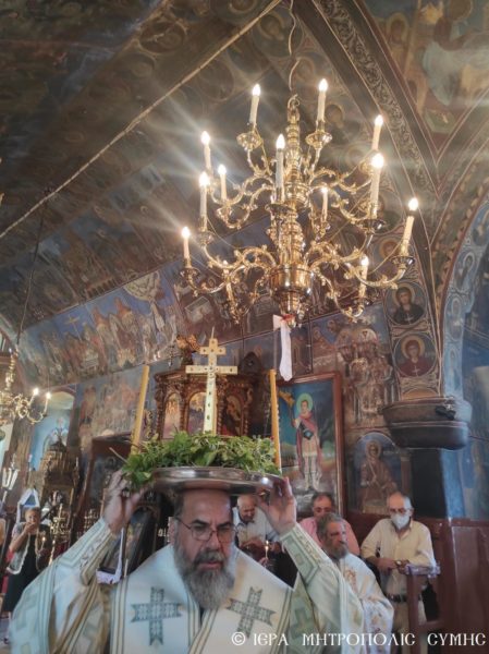 Την κυριώνυμο ημέρα της Εορτής, ο Σεβασμιώτατος Μητροπολίτης Σύμης κ. Χρυσόστομος χοροστάτησε στον Όρθρο και τέλεσε την Θεία Λειτουργία στον πανηγυρίζοντα Ενοριακό Ιερό Ναό του Τιμίου Σταυρού Σύμης, με συλλειτουργούς του τον π. Ελευθέριο Οθίτη, τον π. Γεώργιο Χατζηχρυσάφη, τον π. Φιλόθεο Κάλφα και τον Διάκονο π. Γεώργιο Κακακιό. Την ι. υμνωδία απέδωσαν γλυγκυφθόγγως ο Πρωτοψάλτης της Ιεράς Μονής Πανορμίτου, Αναγνώστης κ. Μερκούριος Γιανναράς και οι Ιεροψάλτες κ. Χαράλαμπος Κατσιμπρής και κ. Πανορμίτης Κακακιός.