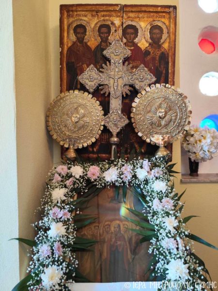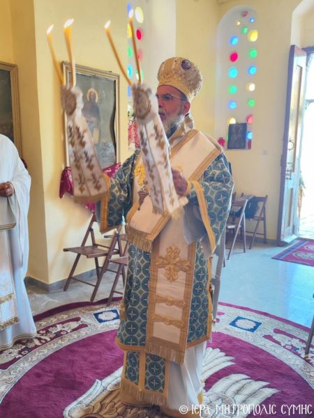 Ο Σεβασμιώτατος, ο οποίος κήρυξε και τον θείο λόγο αναλύων τα υψηλά νοήματα της Εορτής, μετά την Θ. Λειτουργία προέστη της Λιτανείας της ι. Εικόνος και εν συνεχεία ευλόγησε τους προσφερομένους Άρτους. Μετά το πέρας, η φιλόξενη Επιτροπή του Ι. Ναού προσέφερε καφέ και τα καθιερωμένα εόρτια κεράσματα στους συμμετέχοντες πιστούς, ώστε η πνευματική χαρά να διοχετευθεί και στην διαπροσωπική επαφή και επι-κοινωνία των ανθρώπων.