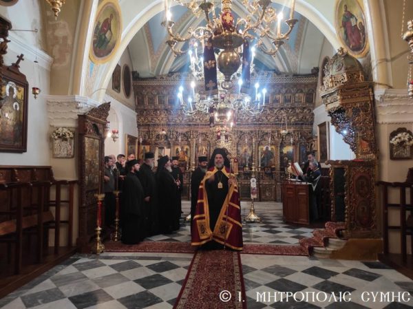 Ο Σεβασμιώτατος με θεολογική εμβρίθεια ανεφέρθηκε στο Πανάγιο Πρόσωπο της Θεοτόκου και στην σημερινή λειτουργική Σύναξη, η οποία θεσπίσθηκε από την Εκκλησία, προκειμένου να τιμηθεί αξιοχρέως από το Χριστεπώνυμο πλήρωμα το Πρόσωπο εκείνο, το οποίο υπούργησε και υπηρέτησε πανευλαβώς το Μέγα Μυστήριο της Ενανθρωπήσεως του Χριστού, η Κυρία Θεοτόκος.
