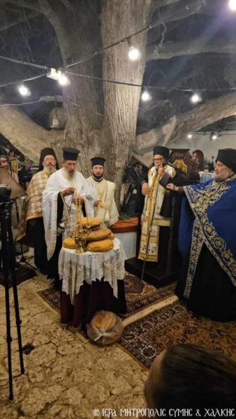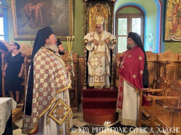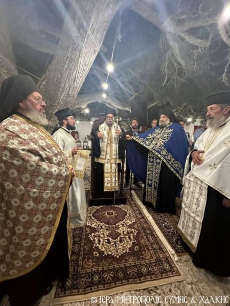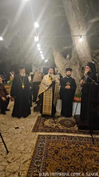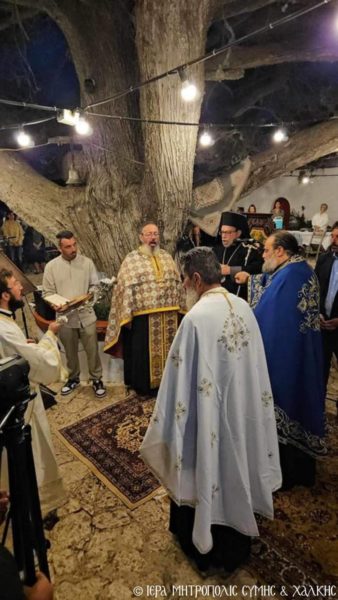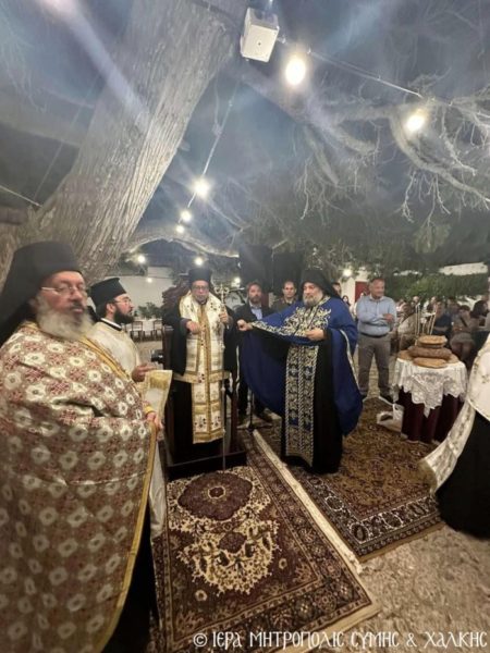 Εφέτος, κατόπιν προσκλήσεως του Σεβ. Μητροπολίτου Σύμης κ. Χρυσοστόμου απουσιάζοντος για τις Συνοδικές του υποχρεώσεις στο Σεπτό Οικουμενικό Πατριαρχείο, της Πανηγύρεως προέστη ο Σεβ. Μητροπολίτης Νουβίας κ. Σάββας, ο οποίος έλκει την καταγωγή του από τη Χάλκη, συμπαραστατούμενος από τον Πανοσιολ. Καθηγουμένου της Ι. Μονής Ταξιάρχου Μιχαήλ του Πανορμίτου Σύμης, Αρχιμ. του Οικουμενικού Θρόνου Αντωνίου Πατρού, τον Πανοσιολ. Αρχιμ. Αποστόλου Πεζουβάνη, ομοίως καταγομένων εκ Χάλκης, ως του Αρχιερατικού Επιτρόπου Χάλκης Οικον. π. Σάββα Πατέρα και του Ιεροδιακόνου μας π. Παύλου Τερεζάκη.