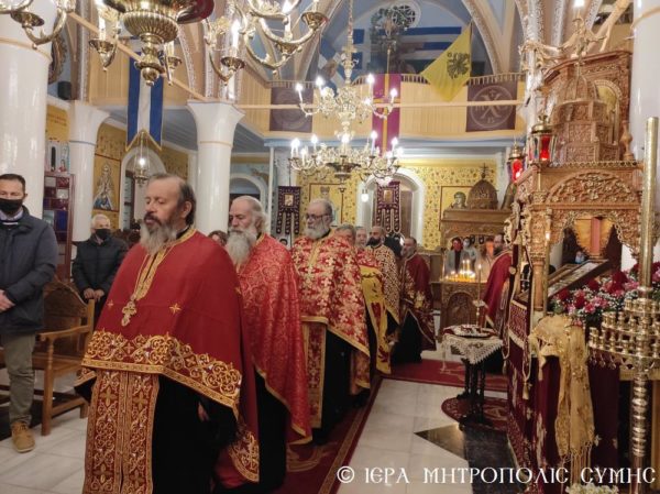 Σήμερα το πρωί (Τρίτης), κυριώνυμο ημέρα της εορτής, ο Σεβ. Μητροπολίτης Σύμης, Τήλου, Χάλκης και Καστελλορίζου κ. Χρυσόστομος χοροστάτησε στον Όρθρο, τέλεσε την Θεία Λειτουργία και ευηγγελίσθη τον θείο λόγο στους πιστούς, έχοντας συλλειτουργούς του τον Πανοσιολ. Καθηγούμενο της Ι. Μονής Πανορμίτου Αρχιμανδρίτη Αντώνιο Πατρό, τον Γεν. Αρχιερατικό Επίτροπο Πρωτοπρ. Στέφανο Μακρή, τον φιλοξενούμενο Γεν. Αρχιερατικό Επίτροπο Καλύμνου Πρωτοπρ. Αμφιλόχιο Σακαλλέρο, τον Εφημέριο του εορτάζοντος Ι. Ναού Οικονόμο Ελευθέριο Οθίτη, τους λοιπούς Εφημερίους της Νήσου και τον Διάκονο Γεώργιο Κακακιό.