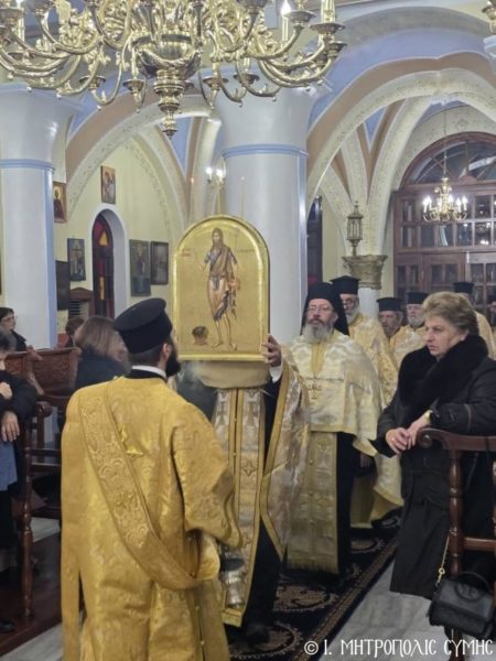 Με την δέουσα εκκλησιαστική τάξη και λαμπρότητα πανηγύρισε την Τρίτη 7 Ιανουαρίου 2025 την Σύναξη του Τιμίου και Ενδόξου Προφήτου Προδρόμου και Βαπτιστού Ιωάννου, ο ομώνυμος Μητροπολιτικός Ιερός Ναός του Αγίου Ιωάννου Προδρόμου Σύμης, με την συμμετοχή πυκνού εκκλησιάσματος.