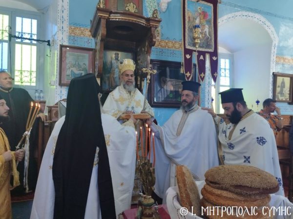 Τα αναλόγια διακόνησαν γλυκυφθόγγως ο Ιεροψάλτης και Επίτροπος του Ι. Ναού κ. Αγαπητός Μιχελής, ο κ. Αντώνιος Μέντης και ο κ. Αναστάσιος Μπαλής. Παρέστησαν ο Δήμαρχος Σύμης κ. Ελευθέριος Παπακαλοδούκας, ο Διοικητής της Δ.Α.Ν. Σύμης Συνταγματάρχης κ. Παναγιώτης Βρανάς, αλλά και αρκετός κόσμος.