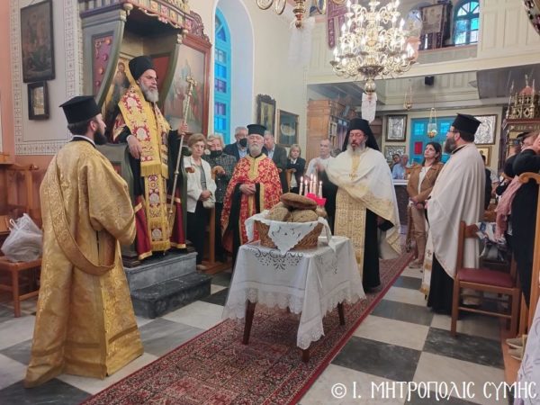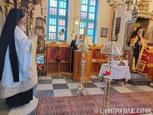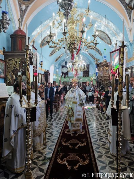 Την κυριώνυμο ημέρα μνήμης του Αγίου Γεωργίου, ο Σεβασμιώτατος κ. Χρυσόστομος, χοροστάτησε του Όρθρου και τέλεσε την Θεία Λειτουργία στον πανηγυρίζοντα Ενοριακό Ι. Ναό Αγίου Γεωργίου άνω Χώρας Σύμης, έχοντας συλλειτουργούς του τον Πανοσιολ. Καθηγούμενο της Ι. Μονής Πανορμίτου, Αρχιμανδρίτη π. Αντώνιο Πατρό, τον Αιδεσ. Εφημέριο του Ι. Ναού Αγίου Ελευθερίου π. Φιλόθεο Κάλφα, τον Αιδεσ. Εφημέριο του Ι. Ναού π. Αντώνιο Μανιά και τον Ιεροδιάκονο π. Παύλο Τερεζάκη.