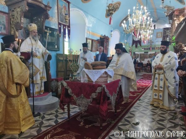 Τα αναλόγια διακόνησαν γλυκυφθόγγως ο Ιεροψάλτης και Επίτροπος του Ι. Ναού κ. Αγαπητός Μιχελής, ο κ. Αντώνιος Μέντης και ο κ. Αναστάσιος Μπαλής. Παρέστησαν ο Δήμαρχος Σύμης κ. Ελευθέριος Παπακαλοδούκας, ο Διοικητής της Δ.Α.Ν. Σύμης Συνταγματάρχης κ. Παναγιώτης Βρανάς, αλλά και αρκετός κόσμος.