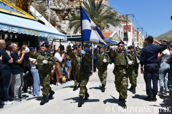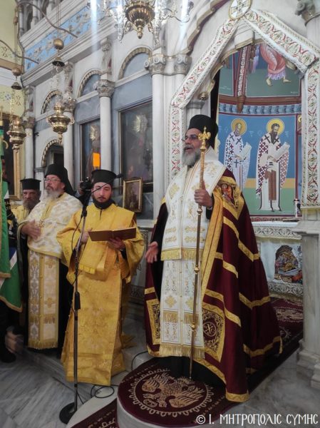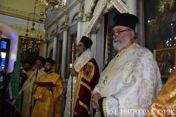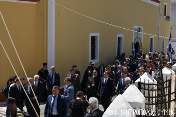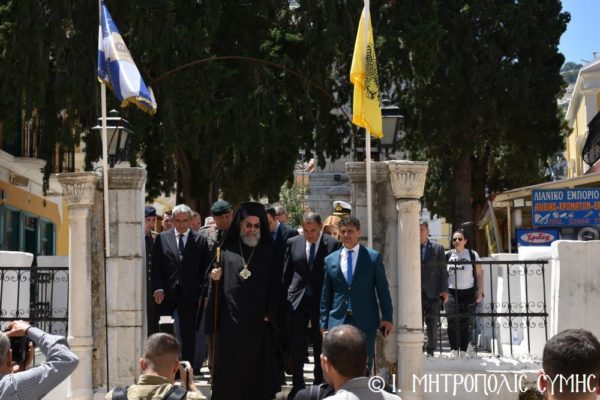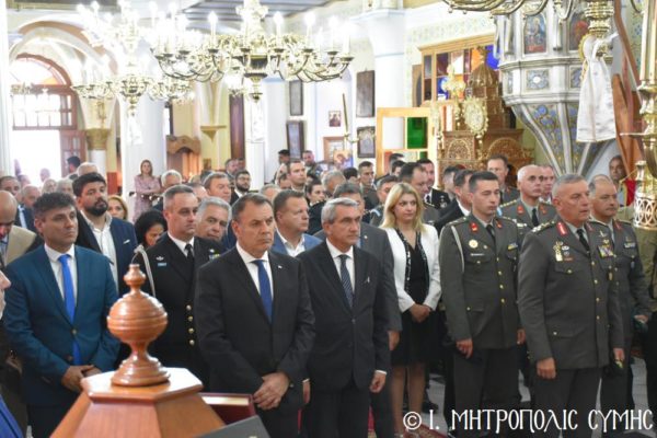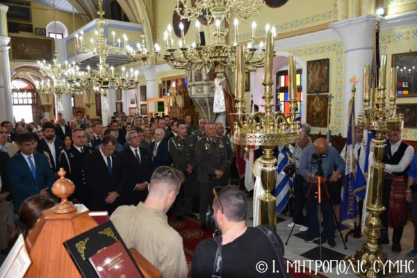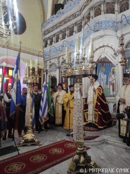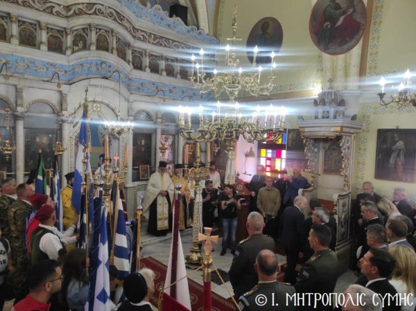 Εν συνεχεία ετελέσθη πανηγυρική Δοξολογία στον Ιερό Μητροπολιτικό Ναό του Τιμίου Προδρόμου χοροστατούντος του Σεβασμιωτάτου Μητροπολίτη Σύμης κ. Χρυσοστόμου, συμπαραστατουμένου εκ του Ιερού Κλήρου της Σύμης, ενώ τον πανηγυρικό λόγο εκφώνησε ο έγκριτος Συμαίος δημοσιογράφος κ. Γεώργιος Ζαχαριάδης.